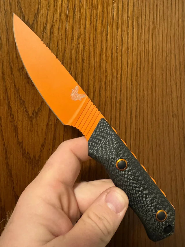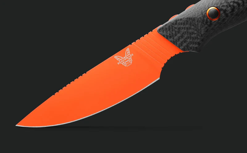 This lightweight hunting knife bares CPM-CruWear steel with ultra-sharp SelectEdge® for exceptional push-cut performance and edge durability. Hi-vis orange Cerakote® and lightweight carbon fiber add up to an uncompromised