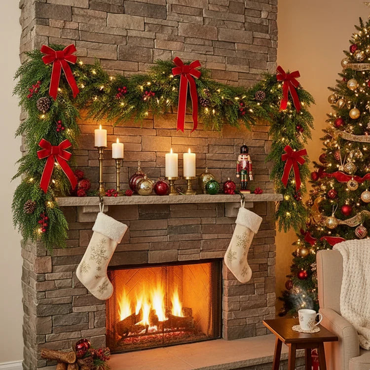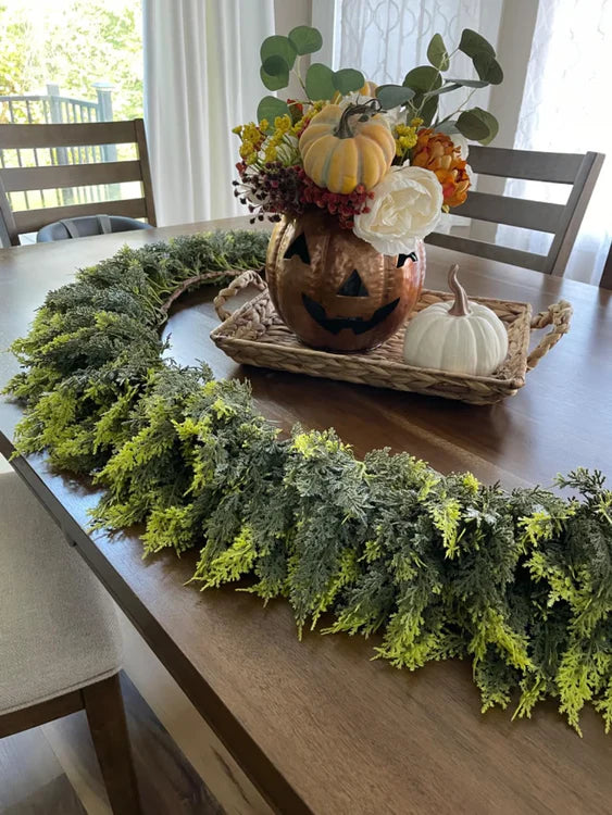 Bring a touch of nature into your space with this set of two 6-ft artificial cedar garlands. Crafted with real-touch needles and lifelike pine textures, they effortlessly emulate freshly gathered winter greenery. Whether draped across a mantel, wound around a stair railing or hung along a wall, these garlands provide a lush, durable look that lasts season after season — no watering, no mess, just vibrant holiday charm.