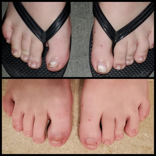 Most users notice visible improvement within2–4 weeks, depending on the infection. Keep using Dermfree until full regrowth.