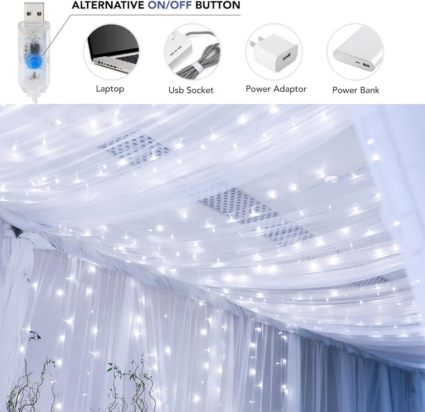 Our curtain fairy lights come with 10 hooks set for hanging. They're suitable for any place you want, use them on windows, curtains, canopy beds, Bedrooms, Christmas, parties, weddings, homes, gardens, patios, etc.