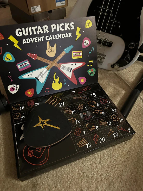 Experience the daily magic of music this December! Our Guitar Picks Advent Calendar is the ultimate countdown to Christmas, offering a surprise for guitar lovers every single morning. Unbox 24 days of unique picks and a special gift to make your holiday season truly rock! 🎄