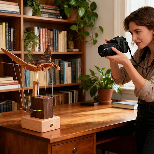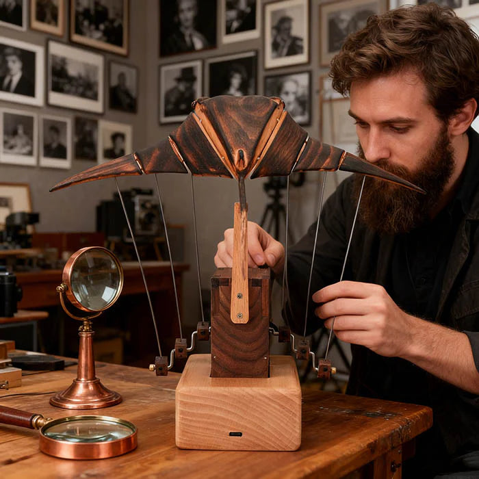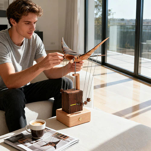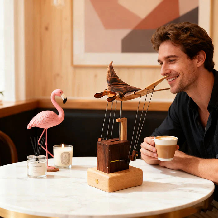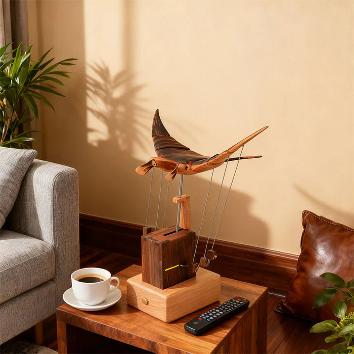 From design to final polish, creators across continents work together with care — making each piece not just a model, but a shared piece of art. If you’re drawn to the quiet poetry of moving mechanisms, this piece will speak to you.The Wooden Bionic Manta Ray isn’t just a décor object — it’s a modern automaton, designed to capture the rhythm of life beneath the sea.Every curve, every gentle wave of its fins, reflects the timeless fascination with motion, balance, and design.Hand-finished in natural wood and powered by a precise internal mechanism, it’s a celebration of kinetic art — simple, soothing, and endlessly mesmerizing.Whether you collect automata, kinetic sculptures, or just love objects that feel alive, this one deserves a place on your desk.Because true beauty, like motion, never really stops.