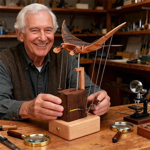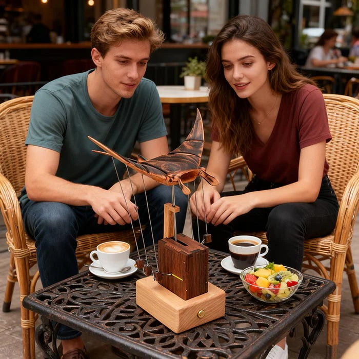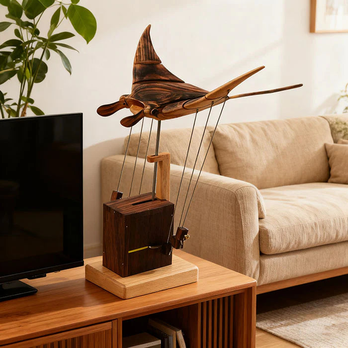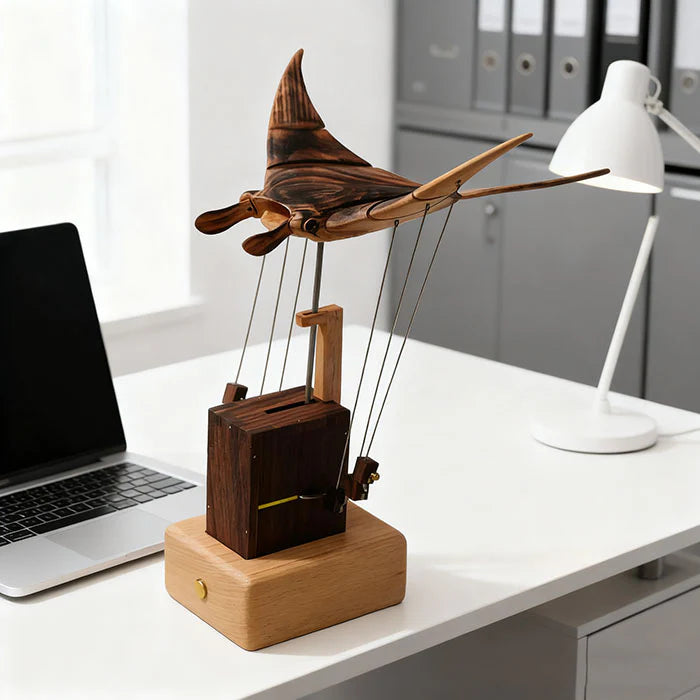 Witness the ocean's silent ballet materialize on your desk. Our walnut manta ray, engineered with precisely interlocking gears, glides through invisible currents with each turn of the crank – transforming restless energy into meditative rhythm. More than mechanics: it’s a kinetic poem bridging Pacific depths and human ingenuity.