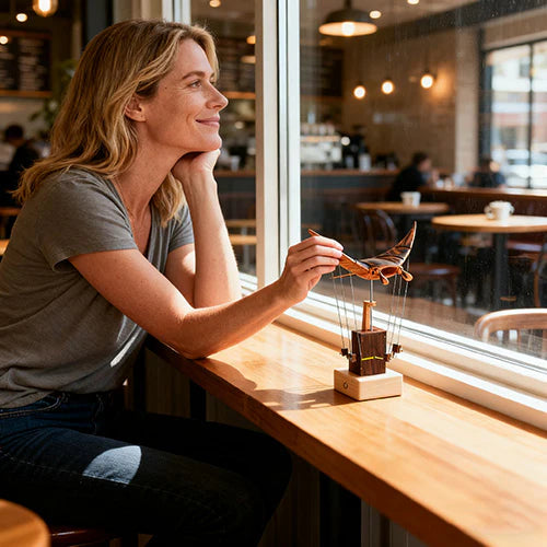 Imagine this gentle wooden manta ray gliding beside you — quietly waving its fins as sunlight hits the polished walnut surface.At home, it becomes a soothing presence on your desk. In the office, it brings a moment of calm between deadlines.Place it in a café, studio, hotel lobby, or bar — and it instantly draws eyes, like a living piece of art.Some keep it as a collection piece, others share it as a thoughtful birthday or Christmas gift.Even in classrooms or STEAM workshops, it inspires curiosity about motion, design, and craftsmanship.Everywhere it goes, it brings one feeling — serenity in motion.Each piece is handcrafted in limited batches, combining global design and precision woodwork. Once you see it move with a single press of the button… you’ll understand why people can’t stop watching.