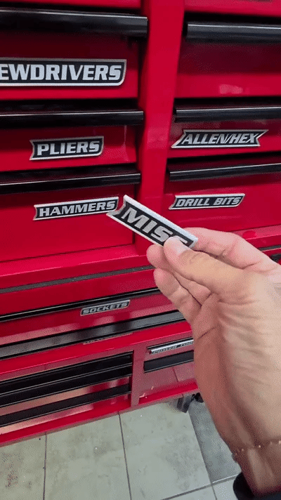 Bring order and personality to your workspace with ColKy Designs Custom Magnetic Tool Labels.Designed for toolboxes, carts, drawers, and cabinets, these magnetic labels make it easy to identify your tools at a glance — no more wasted time searching!