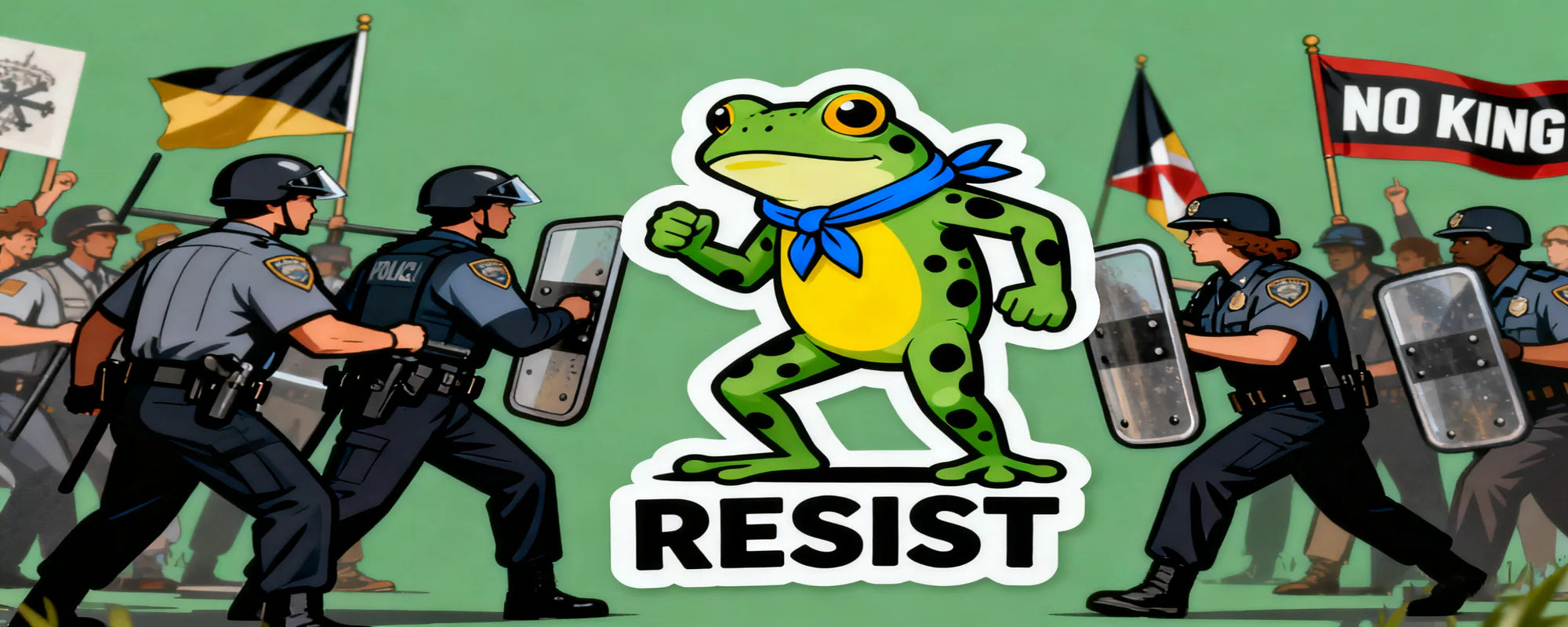 Protests don’t fade, and neither should your message. These stickers are made tough: weatherproof, fade-resistant, and built to stick through it all—just like the U.S. activists who keep fighting. Whether it’s on a bumper in the rain or a backpack on a rally route, your “resistance frog” stays bold.