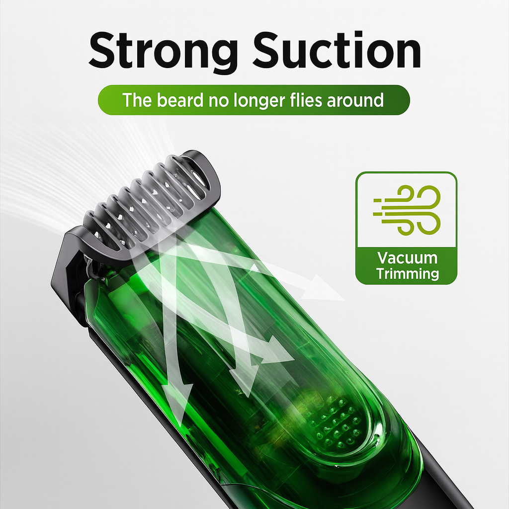 The built-in vacuum quietly captures the trimmed hairs before they fall, keeping your sink spotless and your routine stress-free. No more wiping. No more clogged drains. No more “Can you please clean the bathroom after you shave?”